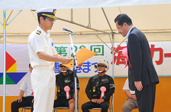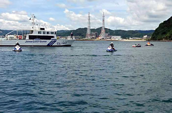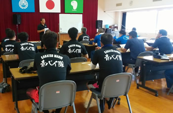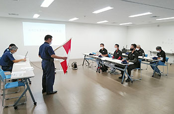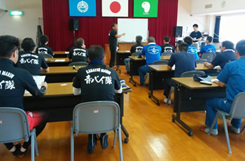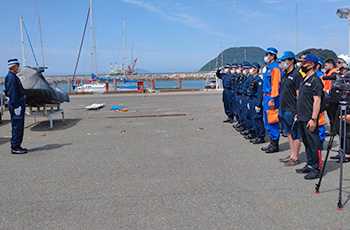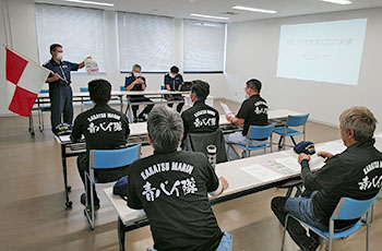 唐津海上保安部にて、唐津マリン青バイ隊、安全講習会 意見交換会 津波フラッグ訓練要領説明会。