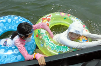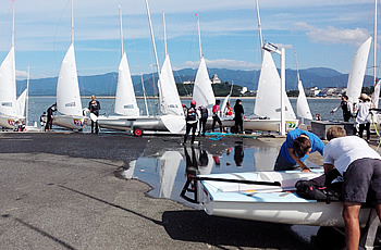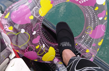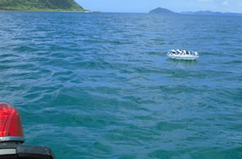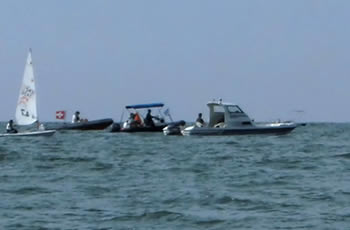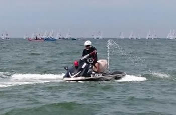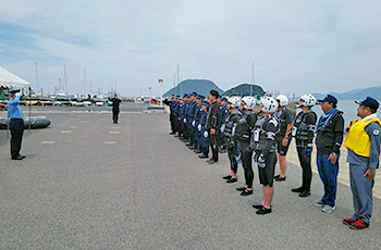 世界津波の日 津波フラッグ掲出訓練 1105分、大津波警報SUP遊走者の救助をし、ヨットハーバーに搬送する。