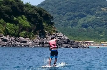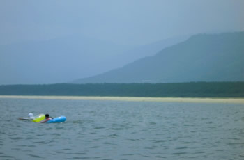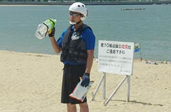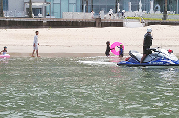 13:45頃西の浜海水浴場沖合いでパドルサーフィンをしていた40歳代の男性が流されて戻れなくなり青バイ隊が救助して浜辺へ搬送した。