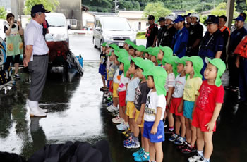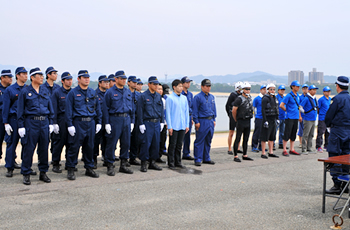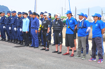 午後1時半より県警唐津警察署との合同救助訓練を実施しました。唐津警察署 境 英明 署長の訓示を受け想定スケジュールの通り訓練を午後2時半終了した。また写真右下本年度から青バイ5艇目を新規導入した。